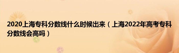 大家好,小高来为大家解答以上问题。2020上海专科分数线什么时候出来,上海2022年高考专科分数线会高吗很多人还不知道,现在让我们一起来看看吧!