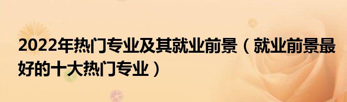 大家好,小高来为大家解答以上问题。2022年热门专业及其就业前景,就业前景最好的十大热门专业很多人还不知道,现在让我们一起来看看吧!