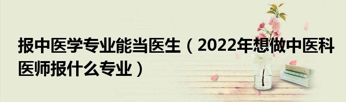 大家好,小高来为大家解答以上问题。报中医学专业能当医生,2022年想做中医科医师报什么专业很多人还不知道,现在让我们一起来看看吧!