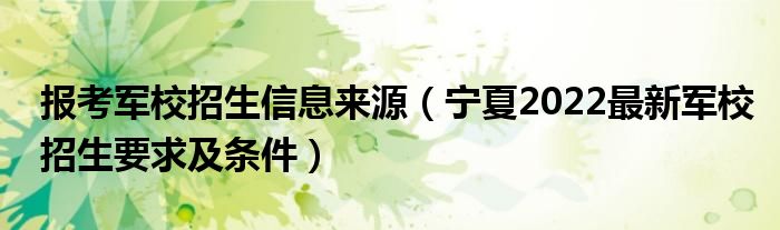 大家好,小高来为大家解答以上问题。报考军校招生信息来源,宁夏2022最新军校招生要求及条件很多人还不知道,现在让我们一起来看看吧!