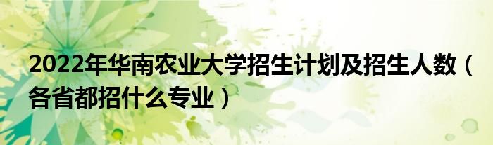 大家好,小高来为大家解答以上问题。2022年华南农业大学招生计划及招生人数,各省都招什么专业很多人还不知道,现在让我们一起来看看吧!