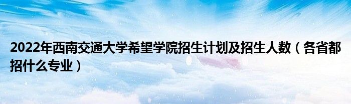 大家好,小高来为大家解答以上问题。2022年西南交通大学希望学院招生计划及招生人数,各省都招什么专业很多人还不知道,现在让我们一起来看看吧!