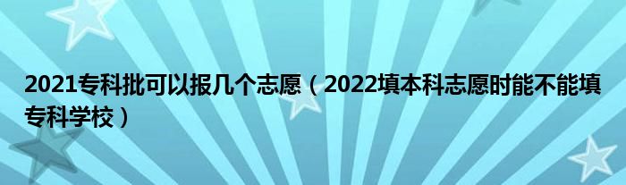 大家好,小高来为大家解答以上问题。2021专科批可以报几个志愿,2022填本科志愿时能不能填专科学校很多人还不知道,现在让我们一起来看看吧!