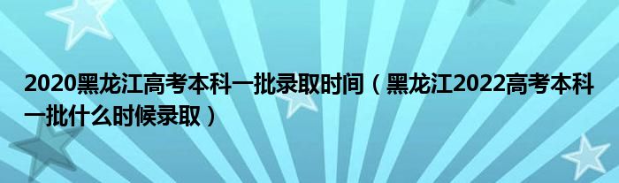 一、2022黑龙江高考志愿录取时间