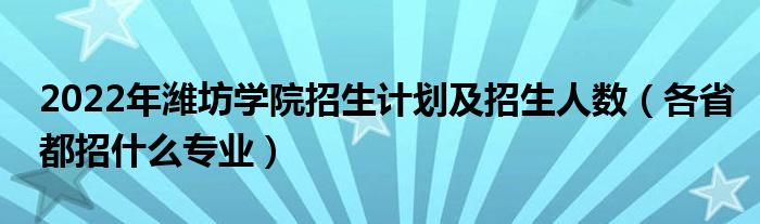 大家好,小高来为大家解答以上问题。2022年潍坊学院招生计划及招生人数,各省都招什么专业很多人还不知道,现在让我们一起来看看吧!
