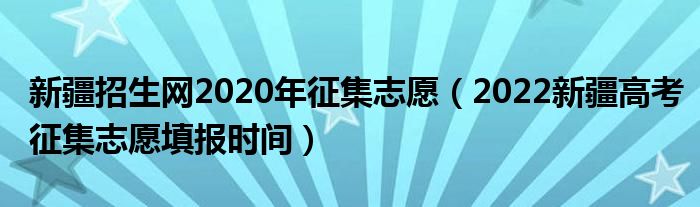 大家好,小高来为大家解答以上问题。新疆招生网2020年征集志愿,2022新疆高考征集志愿填报时间很多人还不知道,现在让我们一起来看看吧!