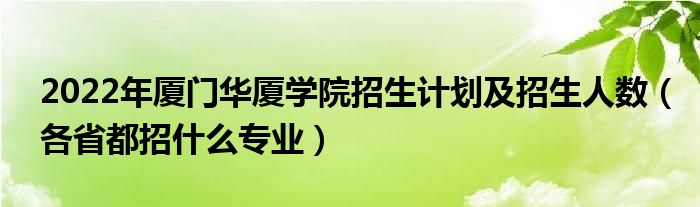 大家好,小高来为大家解答以上问题。2022年厦门华厦学院招生计划及招生人数,各省都招什么专业很多人还不知道,现在让我们一起来看看吧!