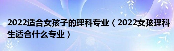 大家好,小高来为大家解答以上问题。2022适合女孩子的理科专业,2022女孩理科生适合什么专业很多人还不知道,现在让我们一起来看看吧!