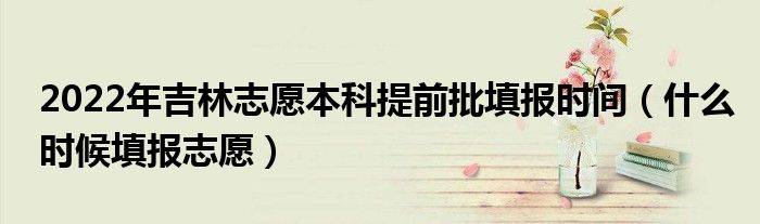 大家好,小高来为大家解答以上问题。2022年吉林志愿本科提前批填报时间,什么时候填报志愿很多人还不知道,现在让我们一起来看看吧!