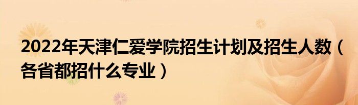 大家好,小高来为大家解答以上问题。2022年天津仁爱学院招生计划及招生人数,各省都招什么专业很多人还不知道,现在让我们一起来看看吧!