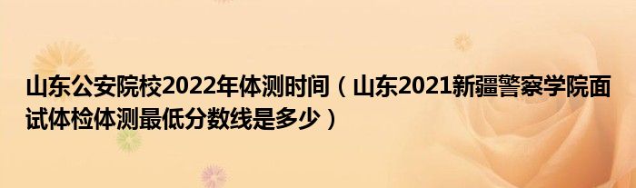 大家好,小高来为大家解答以上问题。山东公安院校2022年体测时间,山东2021新疆警察学院面试体检体测最低分数线是多少很多人还不知道,现在让我们一起来看看吧!