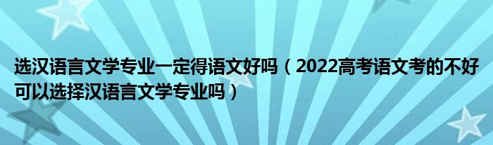 大家好,小高来为大家解答以上问题。选汉语言文学专业一定得语文好吗,2022高考语文考的不好可以选择汉语言文学专业吗很多人还不知道,现在让我们一起来看看吧!