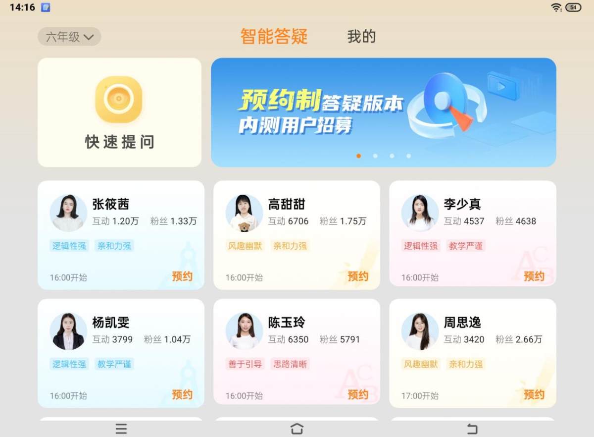 比如像真人家教功能,借助步步高的师资团队,孩子遇到难题时可以直接在线上和他们进行连线,老师们可以直接在线上与孩子面对面答疑解惑,孩子的专注度和对难题的解决效果不比请一个家教差,而且给家长省了好请家教的费用。