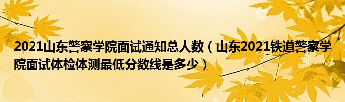 大家好,小高来为大家解答以上问题。2021山东警察学院面试通知总人数,山东2021铁道警察学院面试体检体测最低分数线是多少很多人还不知道,现在让我们一起来看看吧!