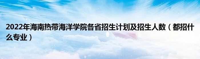 大家好,小高来为大家解答以上问题。2022年海南热带海洋学院各省招生计划及招生人数,都招什么专业很多人还不知道,现在让我们一起来看看吧!