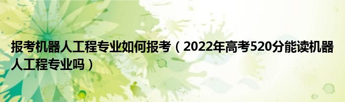 大家好,小高来为大家解答以上问题。报考机器人工程专业如何报考,2022年高考520分能读机器人工程专业吗很多人还不知道,现在让我们一起来看看吧!