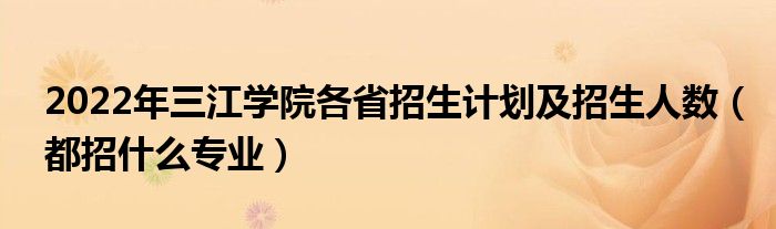 大家好,小高来为大家解答以上问题。2022年三江学院各省招生计划及招生人数,都招什么专业很多人还不知道,现在让我们一起来看看吧!