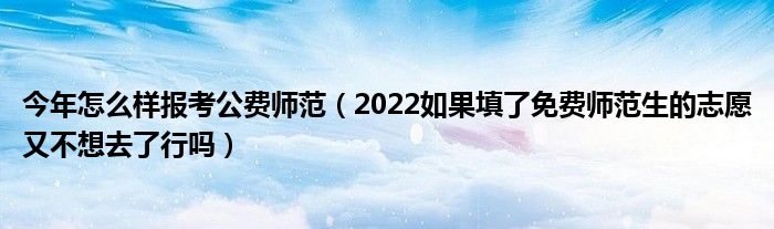 大家好,小高来为大家解答以上问题。今年怎么样报考公费师范,2022如果填了免费师范生的志愿又不想去了行吗很多人还不知道,现在让我们一起来看看吧!