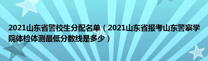 大家好,小高来为大家解答以上问题。2021山东省警校生分配名单,2021山东省报考山东警察学院体检体测最低分数线是多少很多人还不知道,现在让我们一起来看看吧!