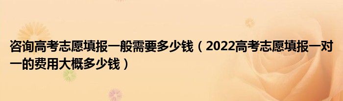 大家好,小高来为大家解答以上问题。咨询高考志愿填报一般需要多少钱,2022高考志愿填报一对一的费用大概多少钱很多人还不知道,现在让我们一起来看看吧!