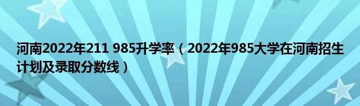 大家好,小高来为大家解答以上问题。河南2022年211 985升学率,2022年985大学在河南招生计划及录取分数线很多人还不知道,现在让我们一起来看看吧!
