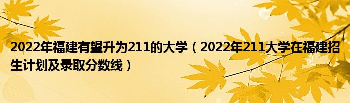 大家好,小高来为大家解答以上问题。2022年福建有望升为211的大学,2022年211大学在福建招生计划及录取分数线很多人还不知道,现在让我们一起来看看吧!