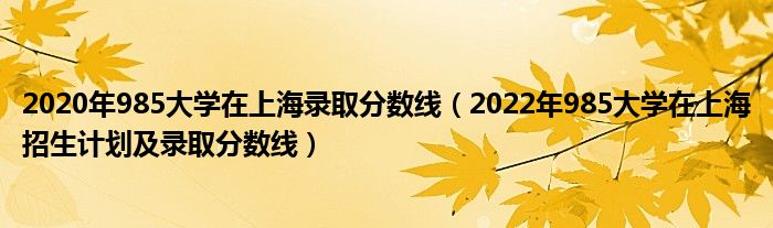 大家好,小高来为大家解答以上问题。2020年985大学在上海录取分数线,2022年985大学在上海招生计划及录取分数线很多人还不知道,现在让我们一起来看看吧!