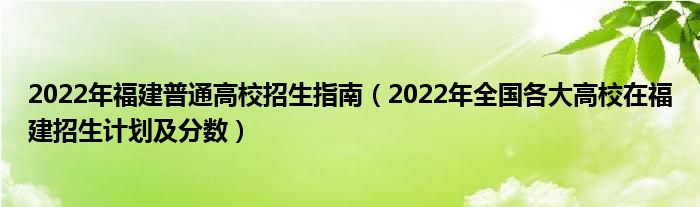 大家好,小高来为大家解答以上问题。2022年福建普通高校招生指南,2022年全国各大高校在福建招生计划及分数很多人还不知道,现在让我们一起来看看吧!