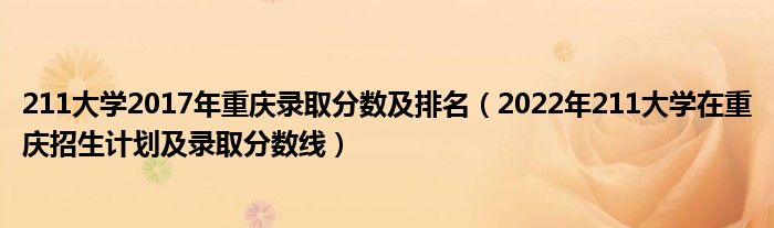 大家好,小高来为大家解答以上问题。211大学2017年重庆录取分数及排名,2022年211大学在重庆招生计划及录取分数线很多人还不知道,现在让我们一起来看看吧!
