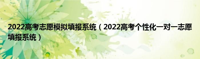 大家好,小高来为大家解答以上问题。2022高考志愿模拟填报系统,2022高考个性化一对一志愿填报系统很多人还不知道,现在让我们一起来看看吧!