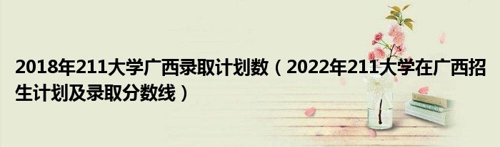 大家好,小高来为大家解答以上问题。2018年211大学广西录取计划数,2022年211大学在广西招生计划及录取分数线很多人还不知道,现在让我们一起来看看吧!