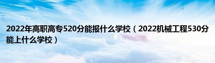 大家好,小高来为大家解答以上问题。2022年高职高专520分能报什么学校,2022机械工程530分能上什么学校很多人还不知道,现在让我们一起来看看吧!