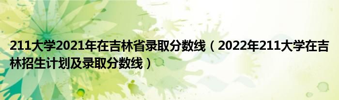 大家好,小高来为大家解答以上问题。211大学2021年在吉林省录取分数线,2022年211大学在吉林招生计划及录取分数线很多人还不知道,现在让我们一起来看看吧!