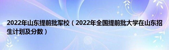 大家好,小高来为大家解答以上问题。2022年山东提前批军校,2022年全国提前批大学在山东招生计划及分数很多人还不知道,现在让我们一起来看看吧!