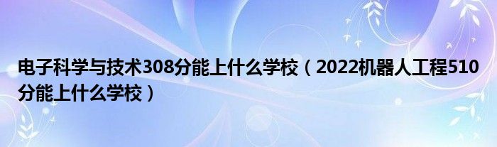 大家好,小高来为大家解答以上问题。电子科学与技术308分能上什么学校,2022机器人工程510分能上什么学校很多人还不知道,现在让我们一起来看看吧!
