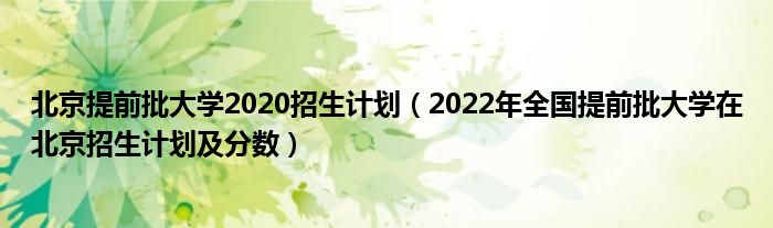 大家好,小高来为大家解答以上问题。北京提前批大学2020招生计划,2022年全国提前批大学在北京招生计划及分数很多人还不知道,现在让我们一起来看看吧!