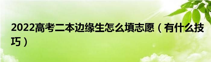 大家好,小高来为大家解答以上问题。2022高考二本边缘生怎么填志愿,有什么技巧很多人还不知道,现在让我们一起来看看吧!