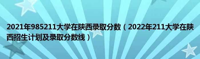 大家好,小高来为大家解答以上问题。2021年985211大学在陕西录取分数,2022年211大学在陕西招生计划及录取分数线很多人还不知道,现在让我们一起来看看吧!