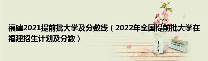 大家好,小高来为大家解答以上问题。福建2021提前批大学及分数线,2022年全国提前批大学在福建招生计划及分数很多人还不知道,现在让我们一起来看看吧!