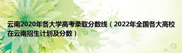 大家好,小高来为大家解答以上问题。云南2020年各大学高考录取分数线,2022年全国各大高校在云南招生计划及分数很多人还不知道,现在让我们一起来看看吧!