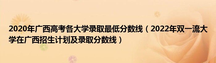 大家好,小高来为大家解答以上问题。2020年广西高考各大学录取最低分数线,2022年双一流大学在广西招生计划及录取分数线很多人还不知道,现在让我们一起来看看吧!