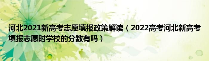 大家好,小高来为大家解答以上问题。河北2021新高考志愿填报政策解读,2022高考河北新高考填报志愿时学校的分数有吗很多人还不知道,现在让我们一起来看看吧!