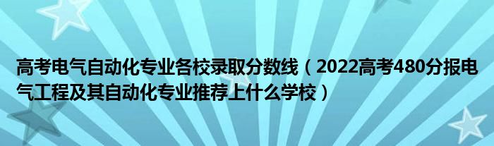 大家好,小高来为大家解答以上问题。高考电气自动化专业各校录取分数线,2022高考480分报电气工程及其自动化专业推荐上什么学校很多人还不知道,现在让我们一起来看看吧!