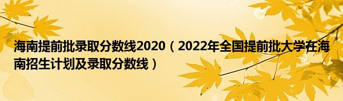 大家好,小高来为大家解答以上问题。海南提前批录取分数线2020,2022年全国提前批大学在海南招生计划及录取分数线很多人还不知道,现在让我们一起来看看吧!