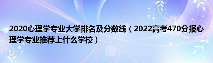 大家好,小高来为大家解答以上问题。2020心理学专业大学排名及分数线,2022高考470分报心理学专业推荐上什么学校很多人还不知道,现在让我们一起来看看吧!