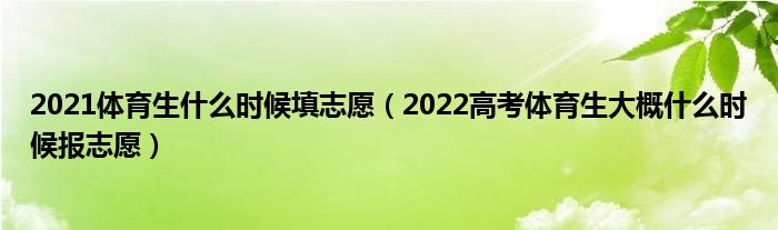 大家好,小高来为大家解答以上问题。2021体育生什么时候填志愿,2022高考体育生大概什么时候报志愿很多人还不知道,现在让我们一起来看看吧!