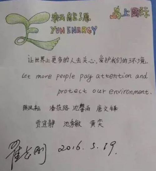 同时在比赛中与各国兴趣相近的学生成立了耘能源青少年全球科创联盟,通过动手实践、结合信息时代、人工智能、物理实验等课程设计,为多所学校的学生提供公益实践活动。现已有28个国家300多人参加。她和耘能源的目标是:“让世界上更多的人来关心爱护我们的环境”。