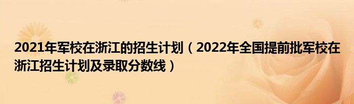 大家好,小高来为大家解答以上问题。2021年军校在浙江的招生计划,2022年全国提前批军校在浙江招生计划及录取分数线很多人还不知道,现在让我们一起来看看吧!