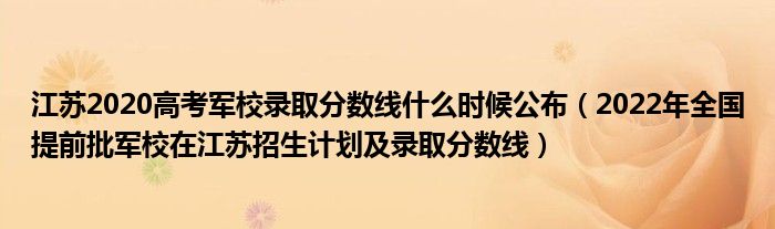 大家好,小高来为大家解答以上问题。江苏2020高考军校录取分数线什么时候公布,2022年全国提前批军校在江苏招生计划及录取分数线很多人还不知道,现在让我们一起来看看吧!