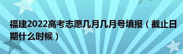 大家好,小高来为大家解答以上问题。福建2022高考志愿几月几月号填报,截止日期什么时候很多人还不知道,现在让我们一起来看看吧!